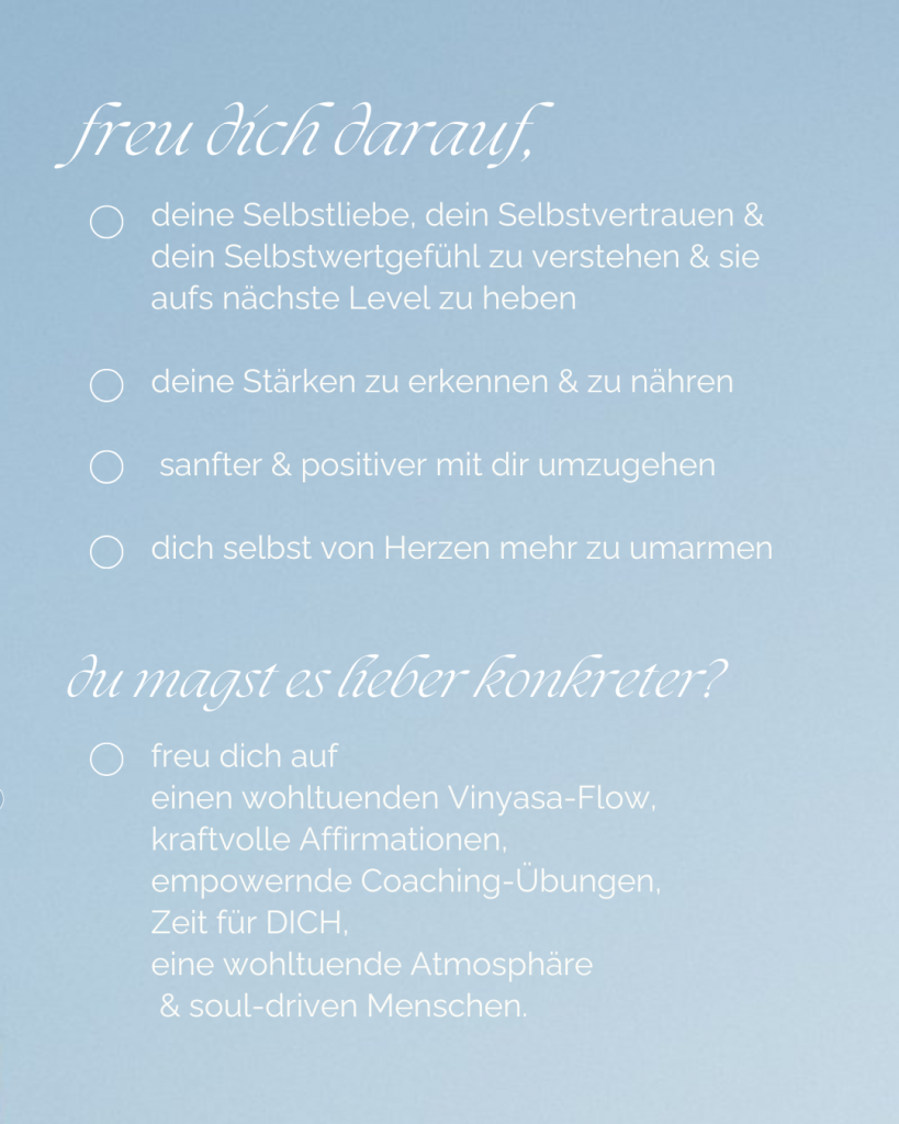 🌙 Es wird wohltuend, kraftvoll und befreiend! Ich freu mich sehr, gemeinsam mit dir deine Selbstliebe wachsen zu lassen 🤍